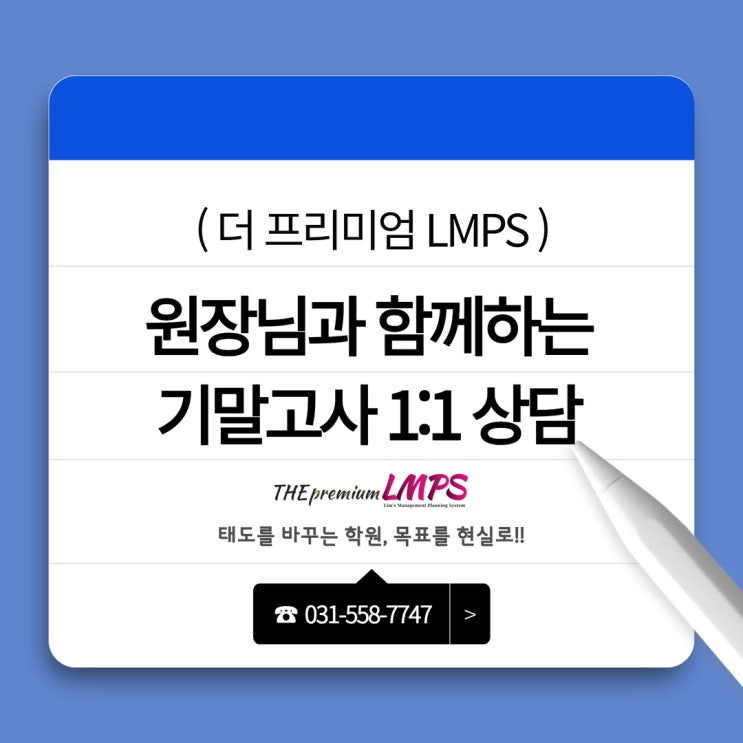 안녕하세요 다산의 수학 강자, LMPS 수학학원입니다. 중학교를 졸업하고 고등학교에 입학하는 시기, 또 새 학년을 맞이하는 지금 이 시기에는 지난 학습을 점검하고 앞으로의 학업 방향을 다시 설정하는 것이 무척 중요합니다. 학생의 현재 위치를 정확히 파악하고, 강점과 보완점을 확인하며 효율적인 학습 방법을 계획하는 과정이 한학기, 한 해의 성적과 입시 결과에 큰 영향을 미치기 때문입니다. THE PREMIUM LMPS에서는 26년 2월 2일(월)부터 2월 28일(토)까지 노혜림 원장님과 함께하는 기말고사 1:1 맞춤 상담을 진행합니다. 이번 상담은 단순한 성적 확인에 그치지 않고, 학생 개개인의 학습 기록과 시험 데이터를 바탕으로 각 학생에게....... <img src="https://blogthumb.pstatic.net/MjAyNjAyMDJfMSAg/MDAxNzcwMDMyMTI3NjI3.oQmM94UkqYzD_0o_vqP9l2GM2MeHCY15Jo7YOGkfU08g.IqMj5O8cC5bt8IDS0a4cOnjlrsJYCVl43zzfIMUGZ0wg.JPEG/%C1%DF%B0%ED%B5%EE_%BA%ED%B7%CE%B1%D7_%C7%A5%C1%F6_%BE%E7%BD%C4_%281%29.jpg?type=s3" />