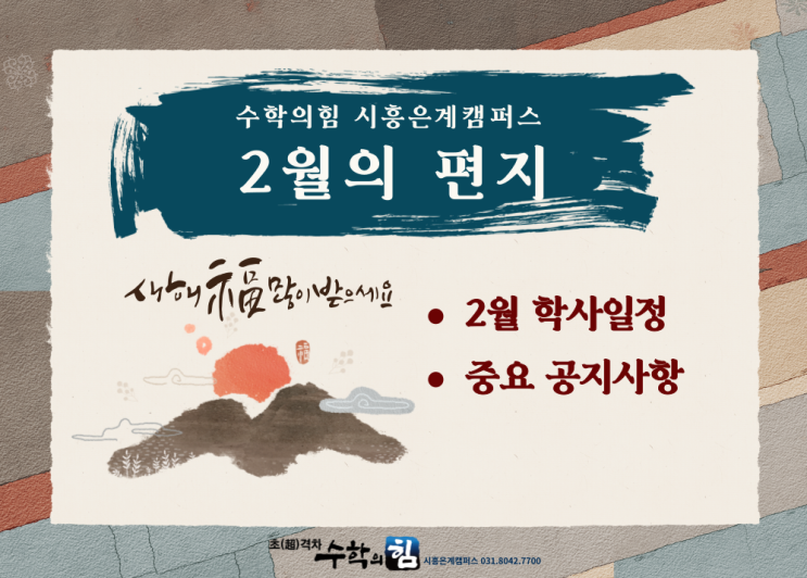 3단계이상 '심화학습'과 '오답관리'에 진심인 시흥은계수학학원 수학의힘 시흥은계캠퍼스- 2월의 편지