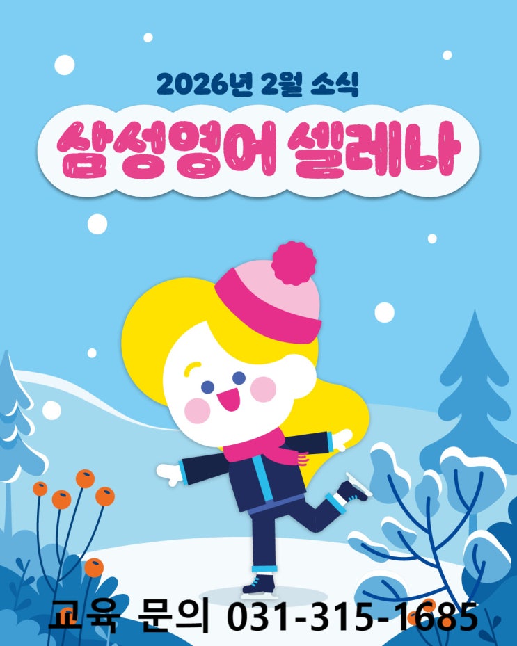안녕하세요! 장곡동 영어학원 삼성영어셀레나 장현진말학원입니다. 새 학기를 준비하며 한 해의 리듬을 차분히 만들어 가는 2월입니다. 우리 친구들이 겨울방학 동안 쌓아온 학습 흐름을 유지하면서, 새 학기를 자신 있게 시작할 수 있도록 수업을 이어가고 있습니다. 짧지만 알차게 보내는 이 시간들이 아이들에게 새로운 학기를 준비하는 밑거름이 될 수 있도록 열심히 지도하겠습니다!! 장곡동 영어학원 삼성영어셀레나 장현진말학원 2월 수업 일정 ▣ 2월 세션 : [초등부] 26년 1월 28일 ~ 26년 2월 27일 [중등부] 26년 1월 26일 ~ 26년 2월 24일 ▣ 수업 시간 : 매주 월화목 / 오후 2시 ~ 7시 40분 수금 / 오후 2시 ~ 6시 ▣ 원활한 수업을....... <img src="https://blogthumb.pstatic.net/MjAyNjAyMDJfNTAg/MDAxNzcwMDAwNDk3NjM2.2LgLGmXUZMDhpa6Kbn-cvs6ns3YFt7vnAVacfmrwyDsg.TJA4KDlEkSZePU0bstdtpdKrQOC9BtabFD8M-fjQKuIg.JPEG/26-2_%BC%D2%BD%C4%C1%F6%28%C4%B3%B8%AF%C5%CDo%29-01.jpg?type=s3" />