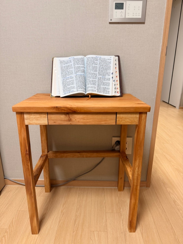 신중규님이 어머니 성경 읽을 용도로 만드신 책상입니다. 공장에서 나오는 집성목 쓰댜가 내 손으로 원목을 다듬어 붙이는 전문목수 과정을 거치면 실력 분만 아니라 나무를 보는 시각의 본질적 차원이 달라집니다. 깔끔하고 단정합니다. <img src="https://blogthumb.pstatic.net/MjAyNjAyMTlfMjIx/MDAxNzcxNDY4NTg3MTMx.2XW0FxWX1wLK3O0DOISS6faIV1XoV96zE65nFy0XVSUg.ljJFjTOHUAhuO45eSn4KN-RRuG3uzq9ohMOQ02Az3BUg.JPEG/900%A3%DF1771468568412.jpg?type=s3" />