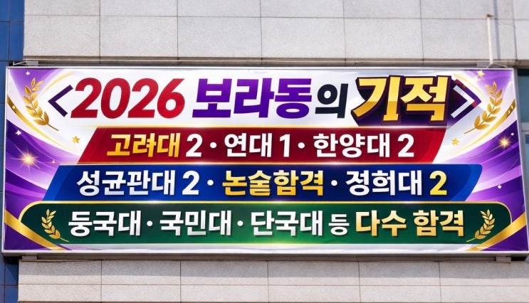 압도적인 대학입시결과로 [보라동의 기적] 을 매년 이어가고 있는 GLE영어학원 GLE논술학원입니다. ("건국대" 가 누락되었습니다.) ★상담/문의: 010 4330 5300 <img src="https://blogthumb.pstatic.net/MjAyNjAyMjNfMSAg/MDAxNzcxODQ0Nzc5NDEw.INAnNiuvdnI6WAXSSqD0yWccl6S9ZrCLidoLp3aMBvgg.wRYUqvd_FkXlt8ECDxyKYif_VJhASiw_B6zJT4WNlKkg.JPEG/2026%C7%F6%BC%F6%B8%B7_%BD%C3%BE%C8.jpg?type=s3" />