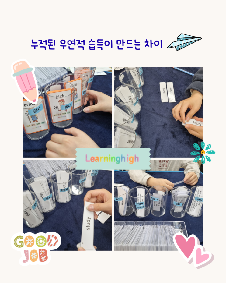 분명 열심히 외웠는데, 며칠만 지나도 다시 처음처럼 느껴지는 경험, 많은 아이들이 반복하고 있습니다. 암기가 오래가지 않는 이유 단어를 ‘암기’로 접근하면 아이들은 이렇게 배우게 됩니다. 시험 보기 위해 외우고 시험이 끝나면 잊어버리는 구조 이 과정에서는 단어가 ‘의미 있는 언어’가 아니라 그저 ‘정보’로 저장되기 때문입니다. 그래서 외운 만큼 사라지고, 아이도 점점 지치게 됩니다. 러닝하이는 다르게 접근합니다 러닝하이에서는 단어를 ‘암기’가 아니라 훈련으로 봅니다. 그리고 시험이 아니라 다양한 경험 속에서 반복되도록 설계합니다. 왜냐하면 아이들의 언어는 ‘의도적인 암기’보다 ‘자연스러운 노출과 반복’ 속....... <img src="https://blogthumb.pstatic.net/MjAyNjA0MDRfNSAg/MDAxNzc1MjU4NDQ5NTU4.QVU44QOkkpscdNFfyEdds-FkZjoqWWbyIUwtbICz1Mwg.Pl-g0BnSmnHPhEyTldDqOGlhit9Gpn8DM-PkvkKds6og.PNG/1.png?type=s3" />