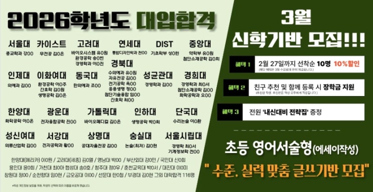 [동탄목동영어수학]3월 신학기반 모집!! 영어논술(에세이작성)반 모집!!