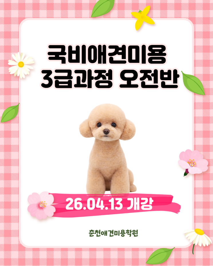 춘천애견미용학원 국비 애견미용 3급 오전반 – 26.04.13 개강