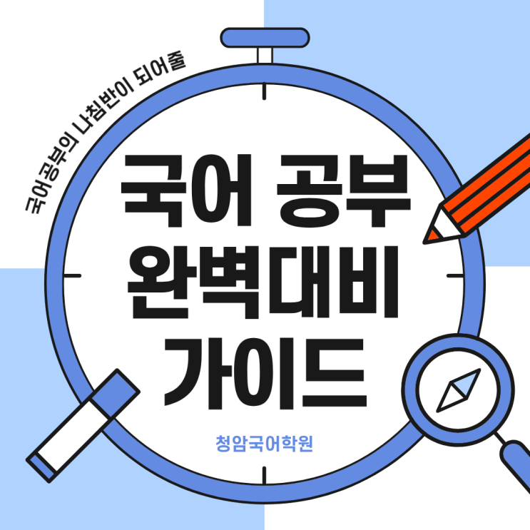 안녕하세요 청암국어학원입니다! 국어 공부가 막막할 학생들을 위해 선생님이 국어 공부 가이드를 만들어왔어요! 각설하고 바로 넘어가볼까요? “열심히 공부하는데 왜 성적은 그대로일까?” 많은 학생들이 한 번쯤은 해봤을 고민이에요. 문제집을 많이 풀고, 시간을 들여 공부하는데도 결과가 나오지 않는다면 그 이유는 공부의 양이 아니라 '방식'에 있을 가능성이 커요.. 따라서 진짜 중요한 것은 문제집의 권수가 아니라 지문을 대하는 태도에요! 지문을 읽을 때 스스로 질문하고, 왜 이런 선택지가 정답인지 설명할 수 있어야 하며, 틀린 문제는 원인을 정확히 분석해야 합니다. 이런 과정이 쌓일 때 비로소 공부의 ‘질’이 높아....... <img src="https://blogthumb.pstatic.net/MjAyNjAxMTVfMTIz/MDAxNzY4NDY2NTk0NDM2.1laY_BdN9YS5TtjWKpsoraBJzTiES3p0MFPapdu6wTgg.uPxgbHGq3uiRUP_aHtO09WGx2ZoRl6mEM5ra8ugzOXcg.PNG/image.png?type=s3" />
