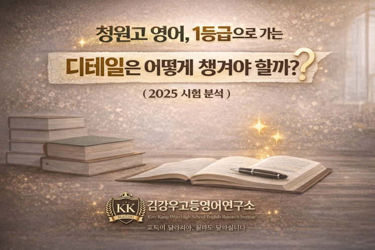 안녕하세요. 김강우 고등영어 연구소입니다. 오늘은 많은 학부모님들과 학생들이 궁금해하는 **‘청원고 영어 내신 준비 방법’** 실제 시험 분석을 바탕으로 자세히 말씀드리려고 합니다. 청원고 영어 시험은 겉으로 보기에는 범위가 넓지 않아 보입니다. 하지만 실제 시험을 경험한 학생들의 반응은 대부분 같습니다. “생각보다 훨씬 어려웠어요.” 그 이유는 단순합니다. 청원고 영어 시험은 ‘양’이 아니라 ‘디테일’을 평가하기 때문입니다. ✅ 청원고 영어 시험의 핵심 특징 청원고 시험은 전형적으로 다음과 같은 구조를 가지고 있습니다. ✔ 시험 범위 자체는 비교적 제한적 ✔ 하지만 객관식 변형문제 비중이 높음 ✔ 서술형 영....... <img src="https://blogthumb.pstatic.net/MjAyNjAyMjJfMjY0/MDAxNzcxNzcxMzQ0NzU3.G2tlPjhrsi9lpS0YSfHpO_M32lCI_xMsrdeMLlP3fbkg.M_HHWBblAZXkELogK2Sh31lS4eu6a41jJn3Hktr2RZMg.PNG/ChatGPT_Image_2026%B3%E2_2%BF%F9_22%C0%CF_%BF%C0%C8%C4_11_42_01.png?type=s3" />