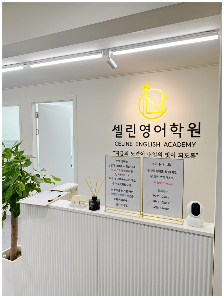 셀린영어, 한 단계 더 성장했습니다 안녕하세요. 셀린영어입니다. 오늘은 조금 설레는 소식을 전해드리려고 해요. 셀린영어가 더 넓고 쾌적한 공간으로 확장하게 되었습니다. 처음 작은 공간에서 시작했을 때를 떠올리면, 이렇게 한 교실을 더 열 수 있게 된 지금이 참 감사하게 느껴집니다. 더 넓고 쾌적해진 강의실 이번 확장으로 새롭게 준비한 강의실입니다. 화이트톤 인테리어에 집중이 잘 되는 구조로 책상을 배치했고, 밝은 조명과 넓은 화이트보드로 수업의 몰입도를 더 높였습니다. 학생들이 앉았을 때 ‘공부해야지’가 아니라 ‘집중이 되는 공간이다’라고 느끼길 바라는 마음으로 준비했습니다. 창문 너머로 보이는 풍경과 따뜻한 햇....... <img src="https://blogthumb.pstatic.net/MjAyNjAyMjNfNjcg/MDAxNzcxODQ0OTMxMjYx.9gHMRyDRTdpQKaa-fx6T5zTtD2UPyWg5smWy0CfAiDog.Ai7q4Shq9u_A4D5DMowjo-BZRfvis6knRq5GHRz5alQg.PNG/image.png?type=s3" />
