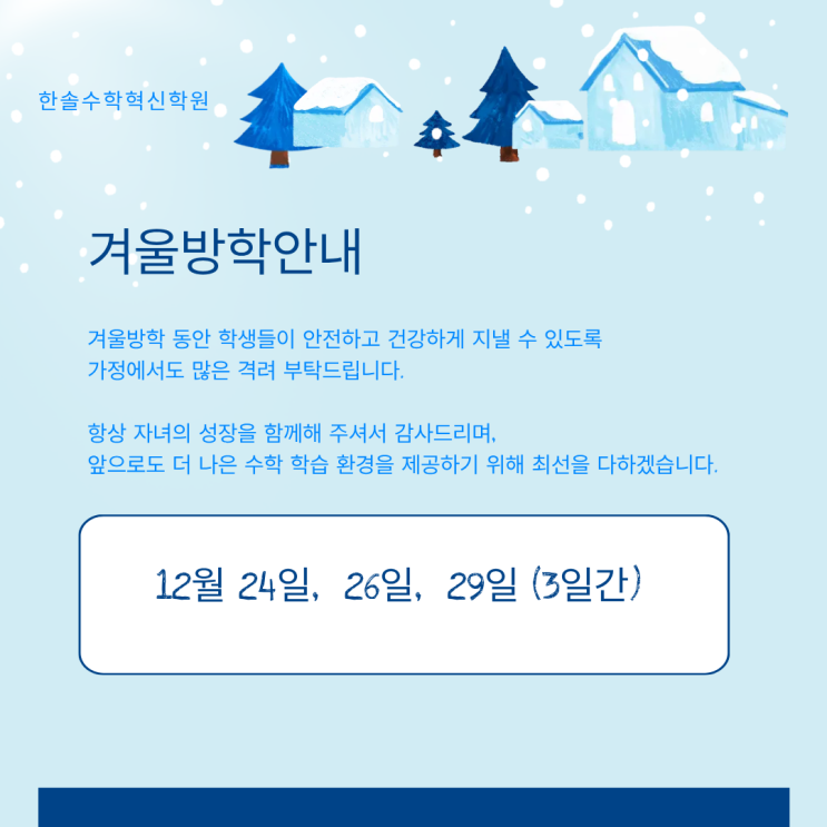 ♡시간을 창조하는 공간! 한솔수학혁신학원 ♡서울대 원장과 함께하는 더욱 완벽하고 알기 쉬운 마법같은 수학. ♡한솔수학혁신학원 010-2958-1676 ♡다이소옆 GS편의점 5층 #서울대 #한솔수학혁신학원 #전주혁신 #수학학원 #온빛초 #온빛중 #만성초 #만성중 #과외 #일대일지도 #다이소옆 #겨울방학 #안내 #방학 <img src="https://blogthumb.pstatic.net/MjAyNTEyMjNfMjY2/MDAxNzY2NDg5Nzk2ODEx.xq01YCL1QUKwisV1N3hYXwfeT5_q0p4oKfhfwj8NlIYg.ZhXc8KvCh17gKCuYAN9cFiUbskdGL3EtXMgl61oClOIg.PNG/%B0%DC%BF%EF%B9%E6%C7%D0.png?type=s3" />