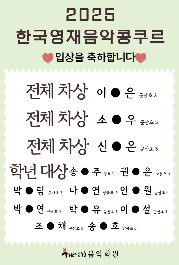 #군산피아노콩쿨 2025 한국영재음악콩쿠르 입상
