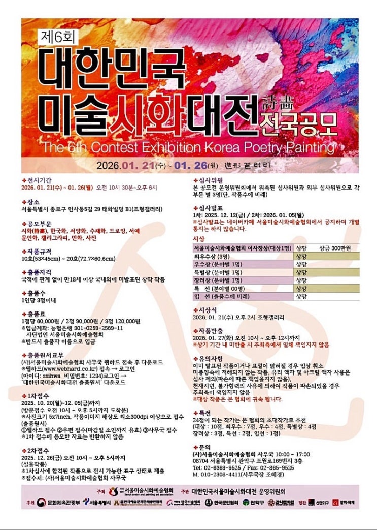 제6회 대한민국 미술시화대전 입선 소식 목동점 김주희 회원님, 진심으로 축하드립니다! 오늘도 아트아뜰리에에 정말 자랑스러운 소식이 찾아왔습니다. 제6회 대한민국 미술시화대전에서 아트아뜰리에 목동점 김주희 회원님이 ‘입선’ 하셨습니다! 더 특별한 이유는, ✨ 그림이 처음이었던 회원님이 ✨ 첫 공모전 도전에서 바로 수상을 하셨다는 점이에요. 처음 붓을 잡을 때의 설렘과 긴장, 하나하나 배워가며 완성한 작품이 이렇게 값진 결과로 이어져 저희도 정말 뿌듯합니다 “처음이라서 안 될까 봐” 걱정되셨나요? 아트아뜰리에에서는 그림 경험이 전혀 없어도, 기초부터 차근차근 배우며 공모전 출품과 수상까....... <img src="https://blogthumb.pstatic.net/MjAyNjAxMTdfMjkw/MDAxNzY4NjE5NDM3MjI1.26XkzbXhxwiAf3RYQU6HHeelqk4TfPhXX07wGsAHQRgg.P4EFxSxeMz3nEweyDx69_qANNe67ELHvfbaepe3B674g.JPEG/KakaoTalk_20260114_091738389.jpg?type=s3" />