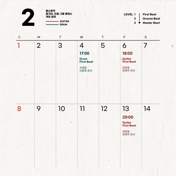 26년 2월 [통기타 & 드럼 그룹레슨] 개강 일정