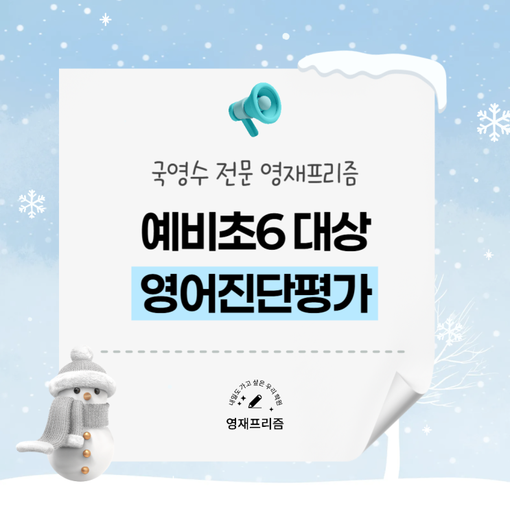 안녕하세요. 서울 응봉동에 위치한 초/중 영어·수학·국어전문 영재프리즘학원입니다. 초등 고학년에서 중학교로 넘어가는 시점은 영어 실력의 양보다 방향이 달라지는 구간입니다. 이에 저희 영재프리즘 학원에서는 예비초6 재원생을 대상으로 영어 진단평가를 실시합니다. 이번 평가는 3월부터 중학생 시수로 수업이 확대되기 전 아이들의 현재 영어 실력을 정확히 진단하고 중등 영어로 자연스럽게 연결하기 위한 겨울방학 맞춤 점검 이벤트입니다. 그럼 오늘은 예비초6 영어 진단평가 안내와 함께 초등에서 중등으로 넘어가는 시점에 영어 공부가 어떻게 달라져야에 대해 알아보겠습니다. 예비초6 영어 진단평가 ✅예비초6 영어 진단평가 리스....... <img src="https://blogthumb.pstatic.net/MjAyNjAxMTJfMjY2/MDAxNzY4MTk2MTk1NDI0.cUzAbaKdjRm2py1ernLwihIKv9iXB830HdtEWuwhvjAg.0mz8XcVMa9cucuTBcOOXbaV0ICUxHivMevINU5Nim1wg.PNG/%C0%C0%BA%C0%B5%BF_%BF%B5%BE%EE%C7%D0%BF%F8-002_%281%29.png?type=s3" />