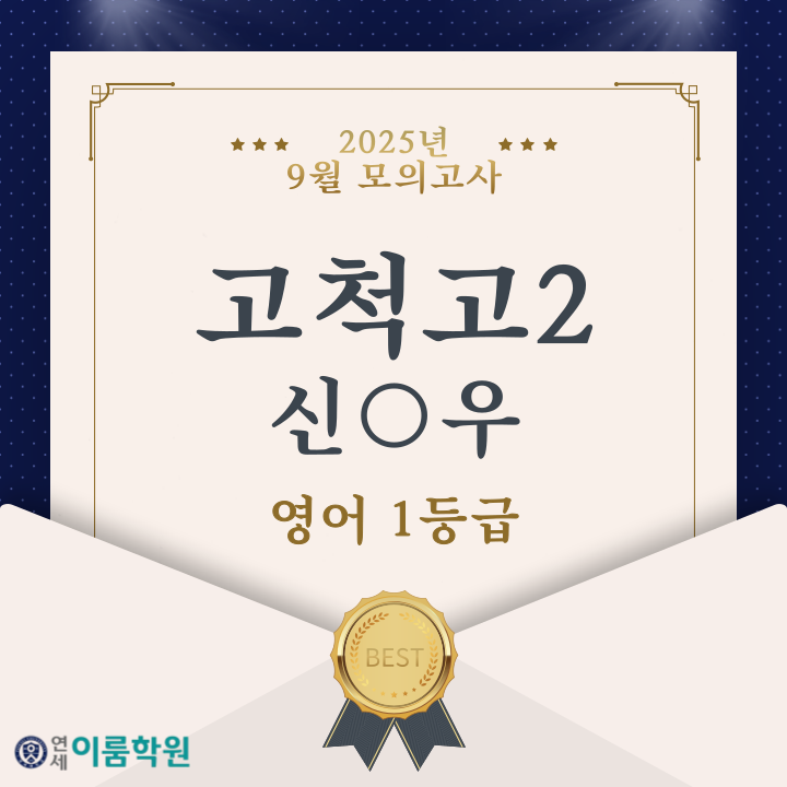 2025 9월 모의고사 성적 우수 장학금 시상 - 고2 신O우
