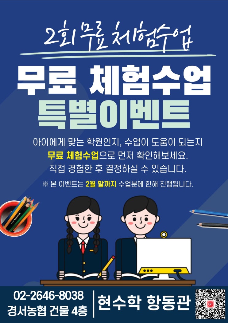 현수학 항동관 무료 체험수업 특별 이벤트 (~2월말까지)