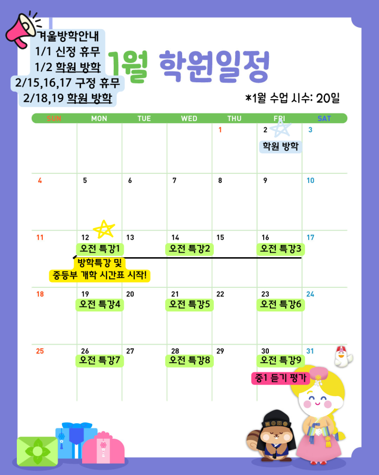 항동영어학원 | 1월 학원 소식