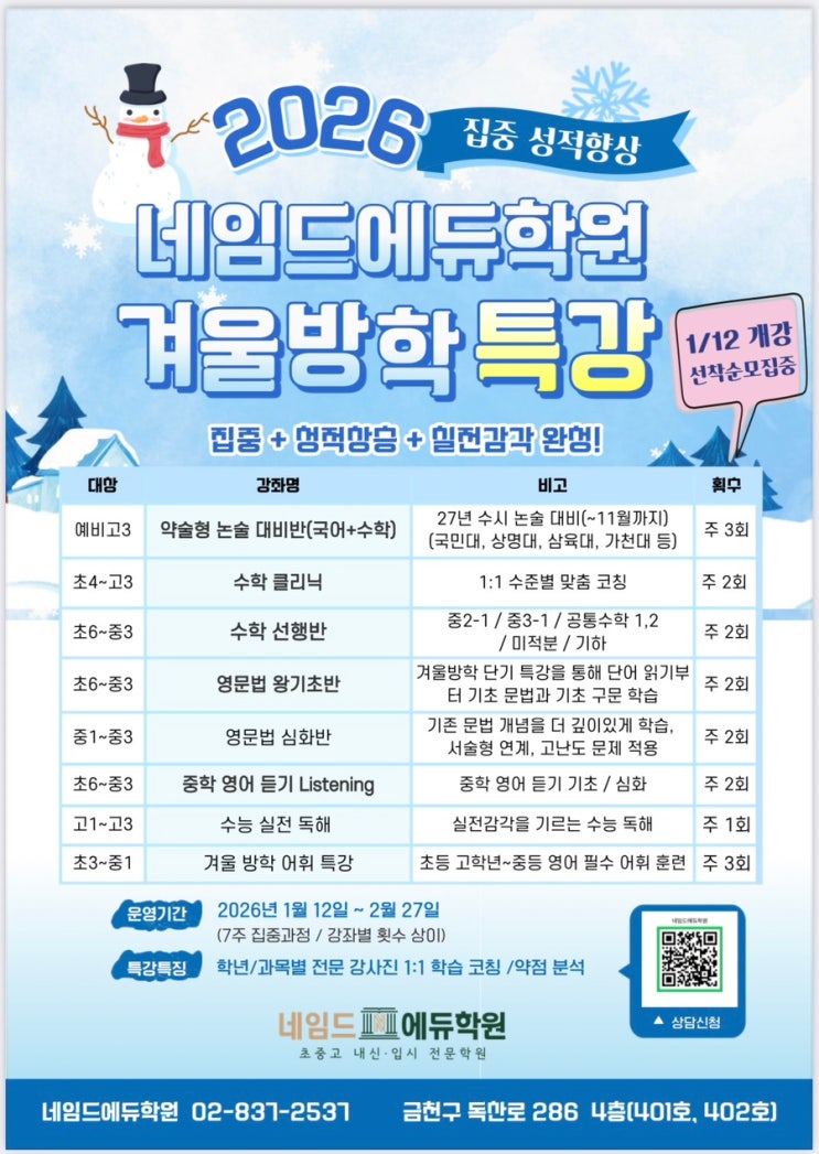 2026 겨울방학 특강 안내