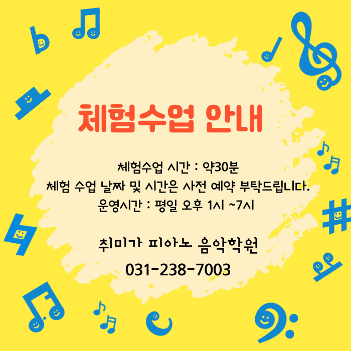 [기안동] 취미가 피아노 음악학원 체험수업 안내