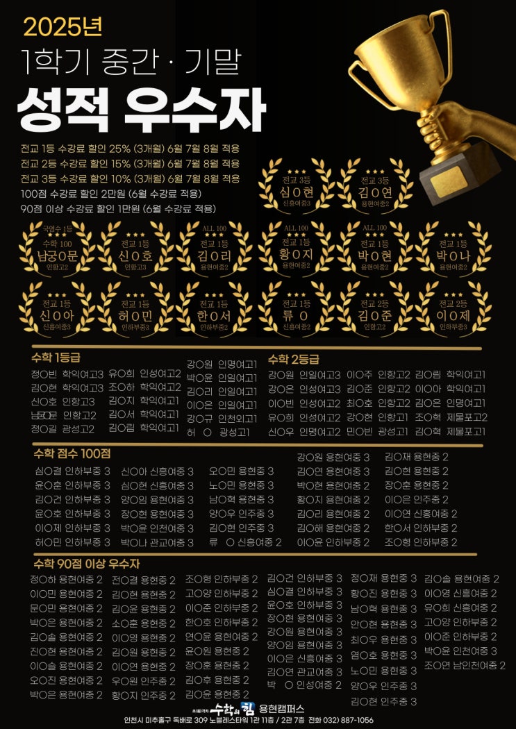 #용현동 #수학의힘 2025년 '명예의 전당' 성적우수자를 공개합니다!