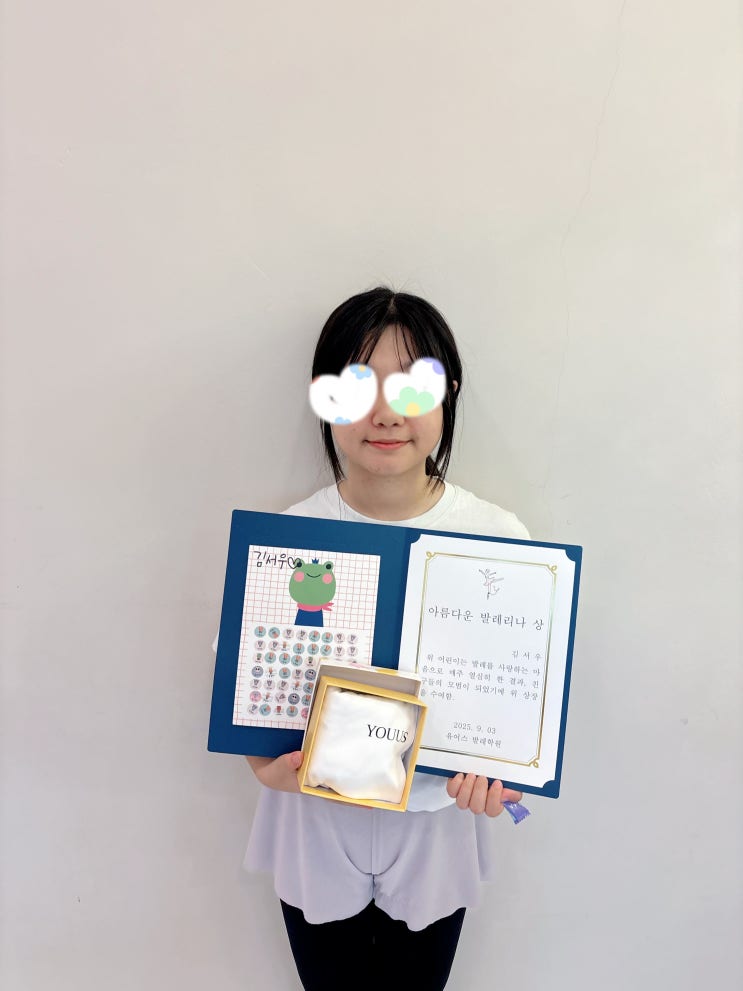 사랑하는 서우야, 스티커판 완성한 것 진심으로 축하해! 중학생이 되고 나서 공부하랴 시험 준비하랴 정말 눈코 뜰 새 없이 바쁠 텐데, 그 귀한 시간을 쪼개서 꾸준히 발레하러 오는 네가 선생님은 얼마나 멋진지 몰라. 힘들 법도 한데 오히려 '발레가 너무 재밌다'며 눈을 반짝이는 서우를 보면, 정말 자신이 좋아하는 일을 즐길 줄 아는 멋진 언니니로 자라고 있구나 싶어. 학업 스트레스, 여기서 발레로 다 날려버리자! 자랑스럽다, 서우야! <img src="https://blogthumb.pstatic.net/MjAyNjAxMTBfMjc4/MDAxNzY4MDE5MDQwNzcz.Go8iMWR8SoJ_bZ5HG5gwihZIXzfcfmD84AAxgh0Au4Mg.IDLzWVV0odEwEZpop8ANpaMsC-1rpXVd4Wk7ZkhN1vIg.JPEG/KakaoTalk_20260110_132039130_04.jpg?type=s3" />