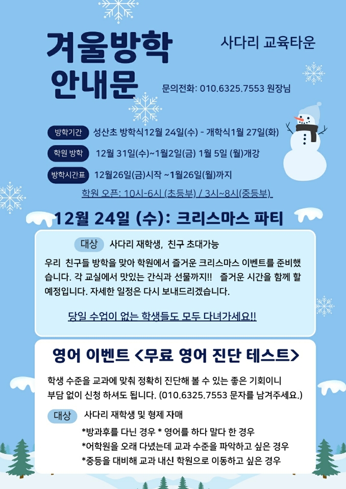 겨울방학 특강 안내문: 사다리 교육타운 (성산초 학원)