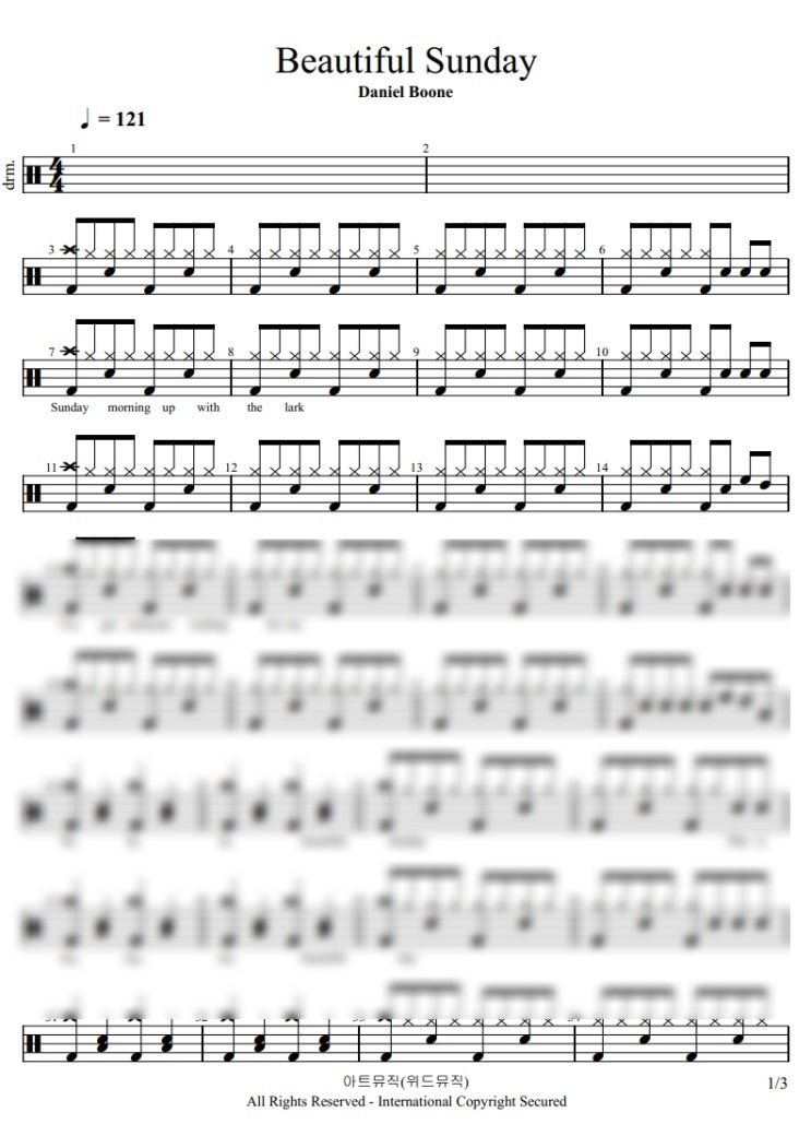 Beautiful Sunday 드럼악보 뷰티플썬데이(Daniel Boone)