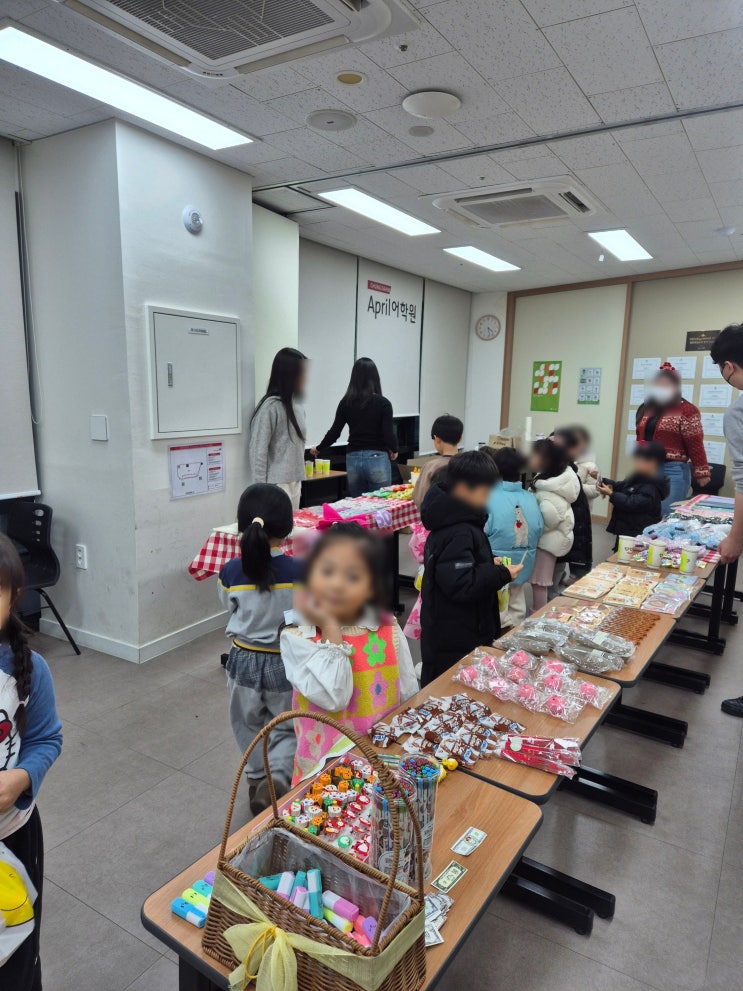 지난 12월 23일 (화), 12월 24일 (수) 기다리던 에이프릴에서 마켓데이가 진행되었습니다. 에이프릴 어학원에서는 아이들이 손꼽아 기다리던 마켓데이가 진행되었습니다! 이번 마켓데이는 단순한 놀이를 넘어, 노력의 보상, 실생활 영어사용 그리고 나눔까지 경험할 수 있었던 뜻깊은 시간이었습니다. 아이들은 한 학기동안 학원 생활을 하며 모은 스탬프 혹은 에이프릴 달러를 이용해, 다양한 간식과 학용품을 '직접' 구매하는 즐거움을 누렸습니다. ️ 내가 직접 고르는 즐거움 아이들은 한 학기 동안 학원 생활을 하며 열심히 모은 스탬프와 에이프릴 달러를 사용해 다양한 간식과 문구류를 직접 고르고 구매해 보았습니다. “....... <img src="https://blogthumb.pstatic.net/MjAyNjAxMTNfOTEg/MDAxNzY4MjczMjAyMzk2.wLR5TaherXXwRc6aDgVogfAFfXUatBK6qgiRhkaOdjEg.Y43jpjbfDR_gqAdON6Qe0ztCl3dKgcWzLgHrtXRIvSog.JPEG/KakaoTalk_20251223_163115347.jpg?type=s3" />