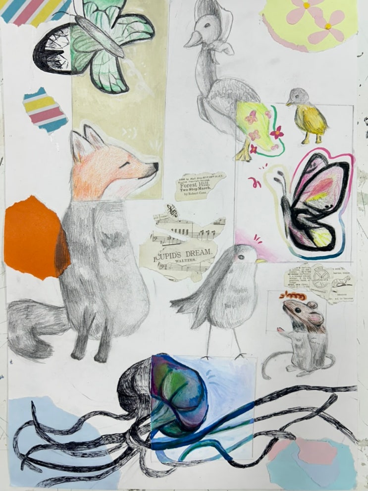 옥길위위아트 미술학원 고학년반 커리큘럼 혼합매체 꼴라쥬 드로잉