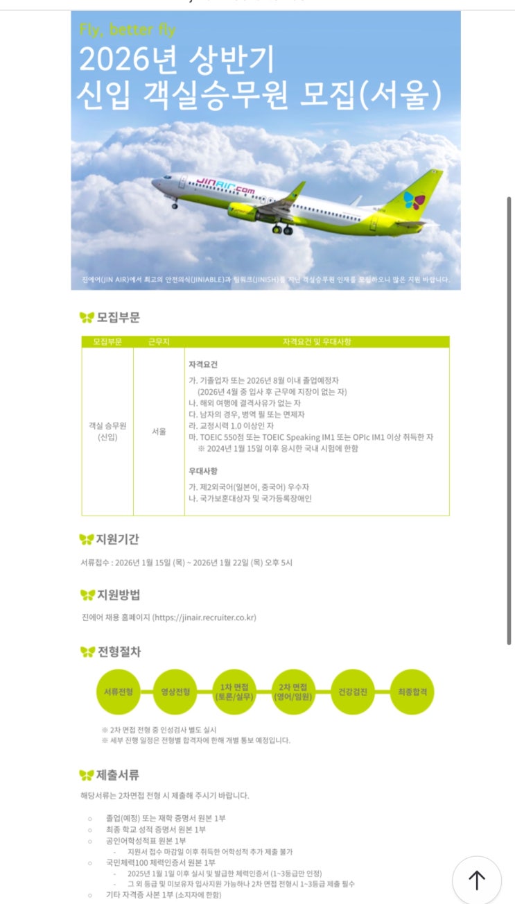 [청주 승무원학원]2026년 1월 공채 진에어 한눈에 알아보기✈️