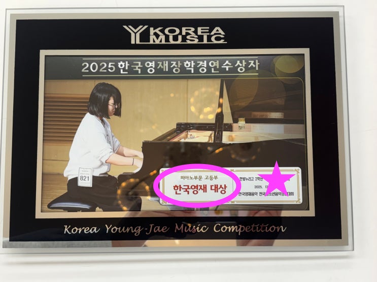 한국영재음악콩쿠르 피아노 중등부·고등부 대상 상장 도착(린뮤직실용음악학원,노원클래식피아노입시,중계역클래식피아노입시)