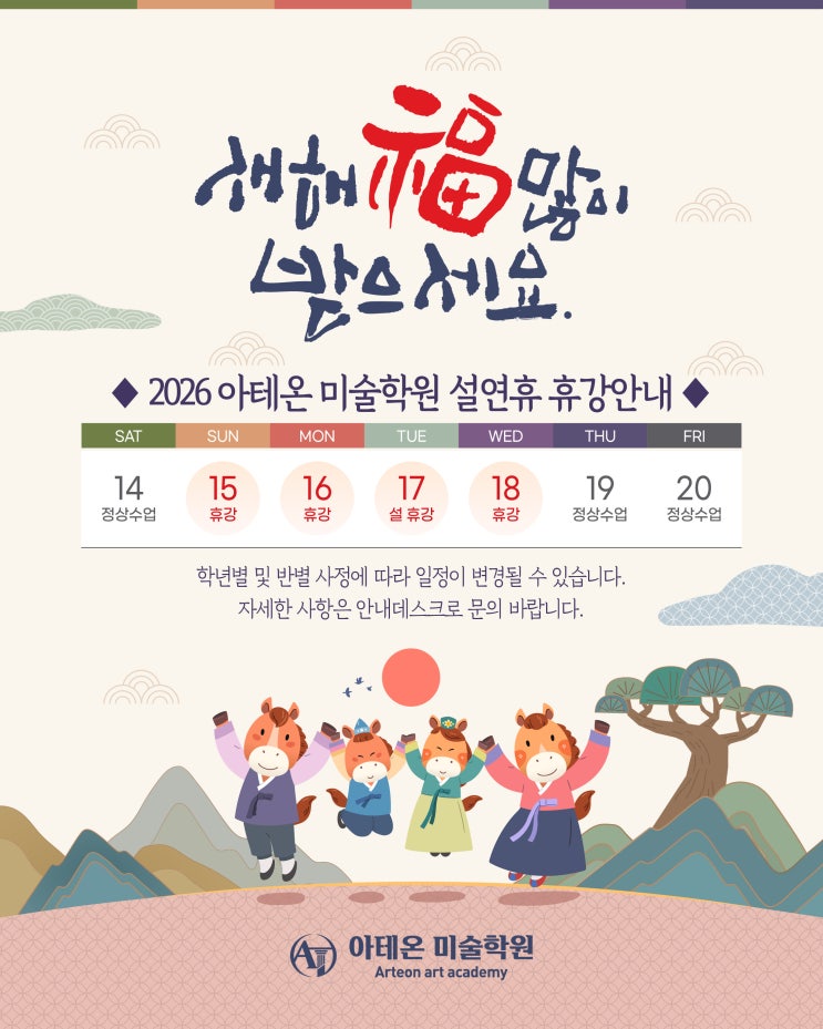 2026년 2월 16~18일 설날 휴무 및 보강 안내 [광주 서구 화정동·염주동미술학원]