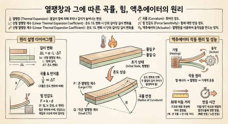 ️ [수능 국어 분석] 오답률 1위! '열팽창과 액추에이터' 지문 완벽 정복하기 안녕하세요! 오늘은 2026학년도 수능 국어에서 최고의 난이도를 자랑했던 과학기술 지문을 파헤쳐 보려고 합니다. "길이가 길면 멀리 가고, 두께가 얇으면 빠르다"는 핵심 원리만 알면 복잡한 수식도 두렵지 않습니다. 함께 살펴볼까요? 1. 지문 핵심 내용 요약 ① 열팽창과 선형 열팽창 계수 모든 물질은 열을 받으면 길이가 늘어납니다. 이 변화를 수치화한 것이 '선형 열팽창 계수'입니다. 공식: (길이 변화율) ÷ (온도 변화량) 특징: 물질마다 값이 다르며, 인바(Invar)처럼 계수가 매우 작은 물질은 정밀 기기에 주로 쓰입니....... <img src="https://blogthumb.pstatic.net/MjAyNjAxMThfMjc1/MDAxNzY4Njk5ODY3ODQ1.v_HaN5dRGHv63vw4241twsmQxEw9eIYsc80rttZSH5wg.f_6_YN5kWdfm8RfssHOLiItBD3RcXb6Rm0k3_3m4eE0g.JPEG/%BF%AD%C6%D8%C3%A2%B0%FA_%BE%D7%C3%DF%BF%A1%C0%CC%C5%CD.jpg?type=s3" />