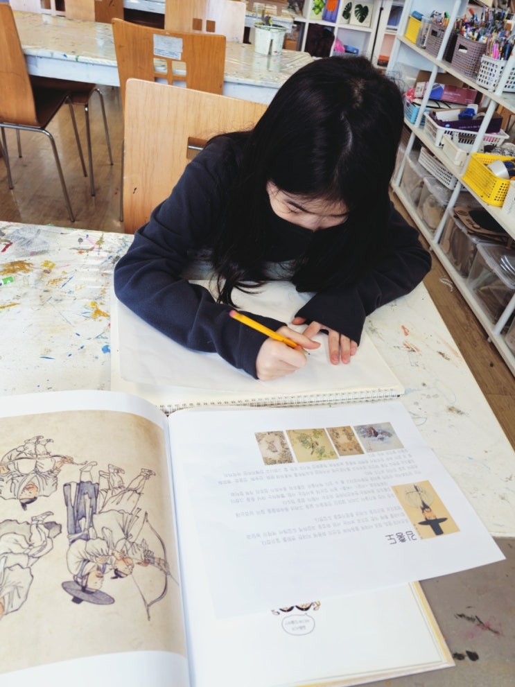 광주 산정동 다올 미꼬미친구들 조선후기 풍속화가 김홍도에 대해 이야기를 나누는 시간을 가져보았어요. 조선 시대 사람들의 일상과 표정을 생생하게 담아낸 김홍도의 풍속화를 함께 감상하며, “왜 이런 장면을 그렸을까?” "김홍도 화가는 어떤사람일까?" 그림을 감상하며 조선시대 생활모습을 볼 수 있어요 러시아 화가의 그림도 같이 감상하면서 아이들 각자의 생각을 자유롭게 이야기해보았습니다. 이후에는 화선지와 먹을 사용해 직접 그림을 그려보는 수업으로 이어졌어요. 처음 접하는 화선지의 부드러운 질감과 먹의 번짐에 아이들은 신기해하며, 붓의 힘 조절과 선의 흐름을 느껴보는 시간을 가졌답니다. 정해진 정답 없....... <img src="https://blogthumb.pstatic.net/MjAyNjAyMDZfMTEx/MDAxNzcwMzYwMjc3NjEy.HQqa8rIIKC0q7TExImutjHgcLFwvIbZFpQYJWDgbcaAg.FSRTFiMOiQlUHRmvoiEo80uX6mLtVHKGjB-bSogXwQgg.JPEG/900%A3%DF1770360275428.jpg?type=s3" />