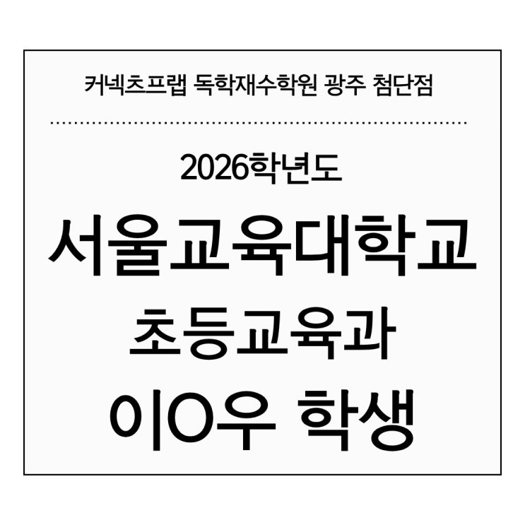 [2026학년도 서울교육대학교 초등교육과 이O우 학생 커넥츠프랩 광주 첨단 독학재수학원]