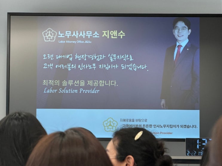 2026.02.22 날씨가 좋았던 (?) 일요일 대전역사전문학원 원아카데미 원장 원쌤은 세미나 참석을 위해 대구에 위치한 봉태영어학원을 방문했습니다. 전국에서 모인 원장님들을 위해 일요일에도 무려 세 시간 강의를 해주신 노무 사무소 '지앤수' 정현호 노무사님 정말 감사합니다. 자칫 지루할 수 있는 노무교육을 특유의 위트로 즐겁게 풀어주셔서 강의에 집중할 수 있었어요. 전국 각지에서 오신 원장님들!! 이 정도 열정이 있는 원장님들 어떤가요? 너무 멋지지 않나요? 학생들에게 조금 더 나은 환경을 제공하기 위해 다양한 강의를 듣고 있답니다. 노무교육이 끝난 후 삼삼오오 모여서 각자의 고충과 노하우 등을 공유하는 시간 이....... <img src="https://blogthumb.pstatic.net/MjAyNjAyMjRfMjQ2/MDAxNzcxOTM2NzEwMDEw.WASvk9RvP_6wx3gKhmUkjnlSxb0SMBRNvjUpw5wJqWsg.onoRJSY7GNBA1IWD_BjNbCDFTHcinONO8nSaqhK5ARQg.JPEG/900%A3%DF1771936568035.jpg?type=s3" />