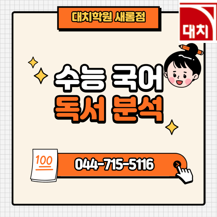 대치학원 새롬점 수능 국어 독서 분석 수업 안내 새롬고/다정고/한솔고/예비고3 수능 준비