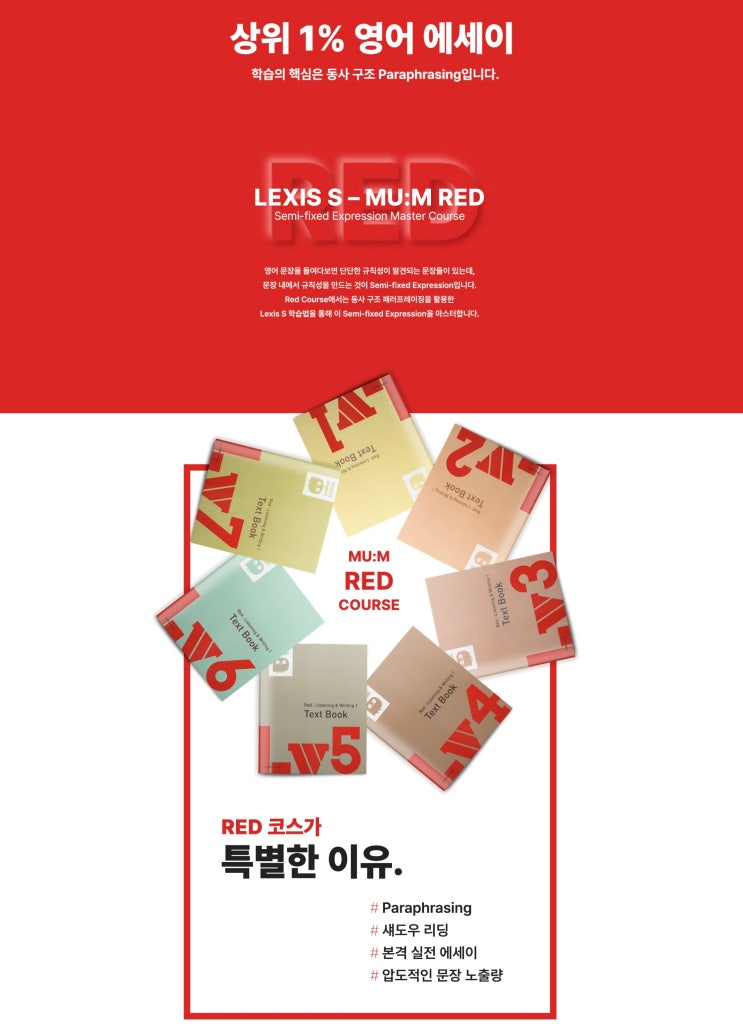 뮤엠영어화서어학원의 Red 코스는 그동안 쌓아온 문장력과 독해력을 바탕으로 아이들이 자신의 생각을 논리적이고 설득력 있는 글로 풀어내보는 과정입니다. 리딩을 통해 글의 소재와 배경지식을 먼저 이해한 뒤, 같은 소재를 다룬 다른 글을 비교하며 다른 표현 방식과 전개를 익힙니다. 이후 SAT Writing Test를 통해 글을 작성하고 점검하는 연습까지 이어지며, 아이들은 영어로 생각을 정리하고 표현하는 경험을 쌓아가게 됩니다. 레드 코스를 마치면 • 문장을 다양한 방식으로 활용하는 표현력 • 생각을 정리해 글로 풀어내는 사고력 • 완성도 있는 영어 에세이 작성 능력 고급 라이팅과 스피킹에 반드시 필요한 능력을 가진 아이로 성장....... <img src="https://blogthumb.pstatic.net/MjAyNjAzMDVfMTk3/MDAxNzcyNzAzMDMzODQw.3NpJfirNP7XbDLVJPxWIrxTRXlkcn_idGEmLG_-qU0Ag.Jbh-V9HDbddQxNYQ1_nvS_9FzpDjZ-YGyM9QMKioVREg.JPEG/KakaoTalk_20260304_183813006.jpg?type=s3" />