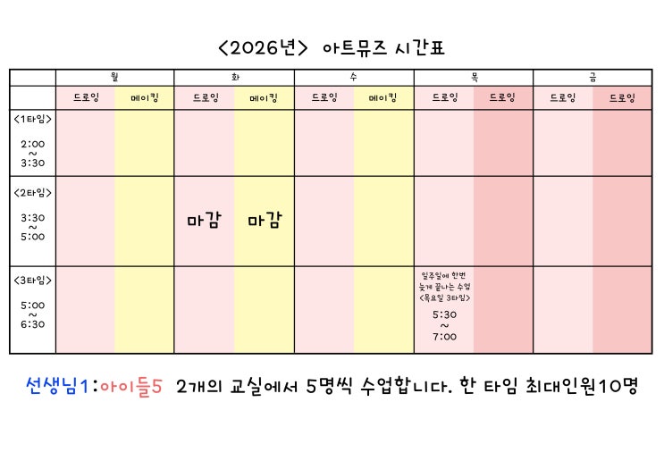 2026. 아트뮤즈 미술학원 수업 시간표 #매원초#중기초#원일초#호수중#레이크시티미술#호반베르디움미술#더샵미술#아이파크미술#광교미술#원천동미술#아동미술
