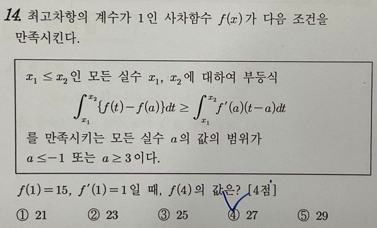 안녕하세요 수학하는고래 입니다. 오늘은 어려웠다는 후일담이 들려왔던 고3 수학 모평 문제 하나를 들고 와봤어요. 이 문제가 어려웠다고 하는 학생들의 이야기를 들어보면 문제의 조건을 어떻게 바라봐야할 지 잘 몰랐기 때문이하고 해요. 해설이 있으니 적당히 보고 이해하면 되겠거니 하는 학생들도 더러 있었는데, 아래의 첨부된 해설을 읽어보시면... ...이렇게 되어 있어 읽어도 무슨 말인지 이해할 수 없다는 학생들이 제법 많았던 문제이기도 합니다. 수학하는고래는 이 문제를 학생들에게 어떻게 설명해주었을까요? 해설과는 조금 다른 방법으로, 수학하는고래만의 자세하고 쉬운 풀이를 설명하려고 해요. 주어진 함수를 기본형으로 이....... <img src="https://blogthumb.pstatic.net/MjAyNjAyMTNfMTQ3/MDAxNzcwOTcxMDY1NjQ2.3mNtqDMH3GMH2hn8HVz_LKw-0KJ9vQ0h0kKhsW0cUV4g._BkarJbUauxFmGTUtiZP2yRFhX-GED9olHKk7-497LEg.JPEG/IMG_2220.jpeg?type=s3" />
