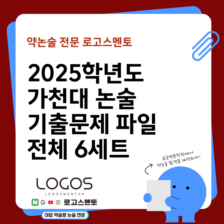 수능이나 논술고사 기출문제는 수험생들에게 향후 자신이 시험 볼 문제에 대한 예측을 제공합니다. 그리고 그 예측에 따라 수능, 또는 논술고사에 대해 효율적인 대비를 하도록 합니다. 특히 대학별 논술고사는 대학마다의 특성에 따라 그 유형이 모두 다릅니다. 중위권 수험생들이 시험을 보는 약술형 논술도 비슷하게 대학별 특성으로 보이고 있죠. 이 글에서는 2025학년도 가천대 약술형 논술 기출문제 6세트를 모두 소개하겠습니다. 그렇게 함으로써 중위권 수험생들이 약술논술에 효율적으로 대비하도록 하려는 것입니다. 가천대를 비롯한 약술형 논술 대학들의 기출문제를 확인하는 방법은 세 가지 정도가 있습니다. 한 가지는 입학처 홈페....... <img src="https://blogthumb.pstatic.net/MjAyNjAyMTRfMzkg/MDAxNzcwOTk1ODQ2NjM3.6Qev5V51jvv9JdCUMEqZJd2zsXuzn6NdbnVSEy3xoKMg.xnIFJLP23p0yaJOOTMR8_5omuUmuKsi0HFADGgmo-XAg.PNG/image.png?type=s3" />