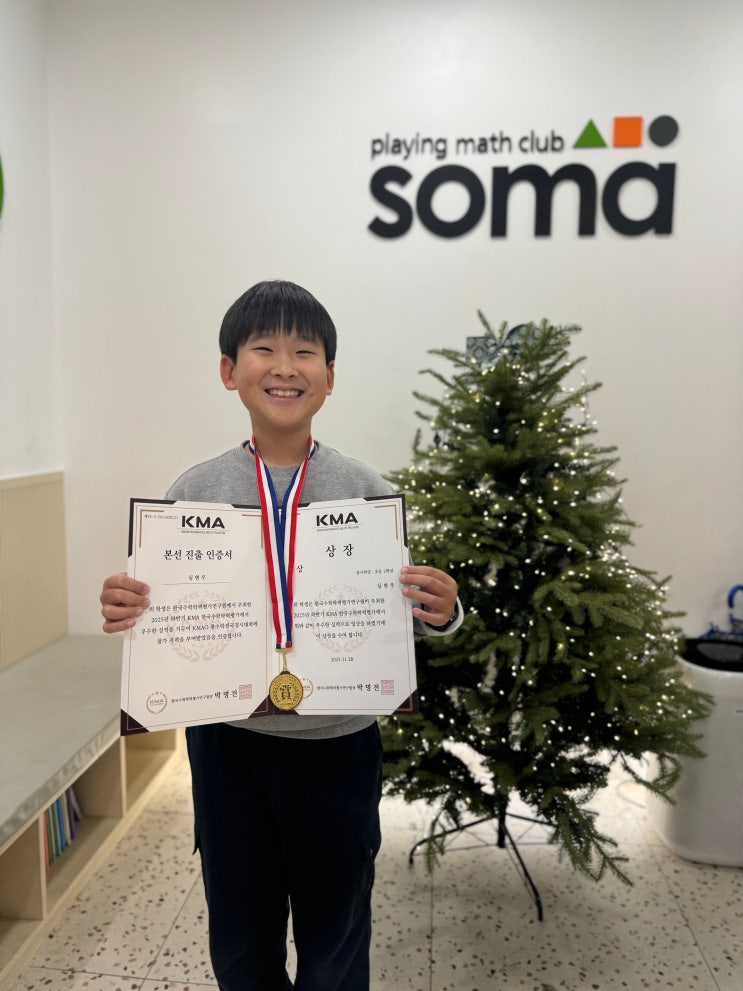 안녕하세요, 성남수정소마 원장 권태희입니다 :) 오늘은 2025년에 성남수정소마에서 가장 활약했던 초등2학년 친구에 대하여 이야기해볼까 합니다. 우리 친구는 7세 5월부터 소마 사고력수학 수업을 시작했어요. 곧잘 수업을 따라오긴 했지만 처음부터 눈에 띄는 아이는 아니었습니다. 손을 번쩍 들지 않았고, 정답을 가장 먼저 외치지도 않구요 ^^ 그저 늘 자기 자리에서. 자기속도로 차근차근 수업을 열심히 따라오던 친구였습니다. 대신, 수업이 시작되면 가장 먼저 책을 펴고, 문제가 어려워도 쉽게 포기하기 않았고. 잘 모르겠는 부분이 있으면 조용히 읽고 또 읽어보던 아이였죠. 소마 출석율 또한 가장 좋았습니다. 어떤 일이 있어도 거의....... <img src="https://blogthumb.pstatic.net/MjAyNTEyMjhfNTUg/MDAxNzY2ODkxNDc5NjEy.APGwpFpSSbyUdeEXkiDvCib3YhBfF_qQiQNhNz_A3Lwg.xJrcdRdBLwyV91ob3t_sIigU5ygw993LGY6rL0pEyScg.JPEG/KakaoTalk_20251228_110638086_17.jpg?type=s3" />