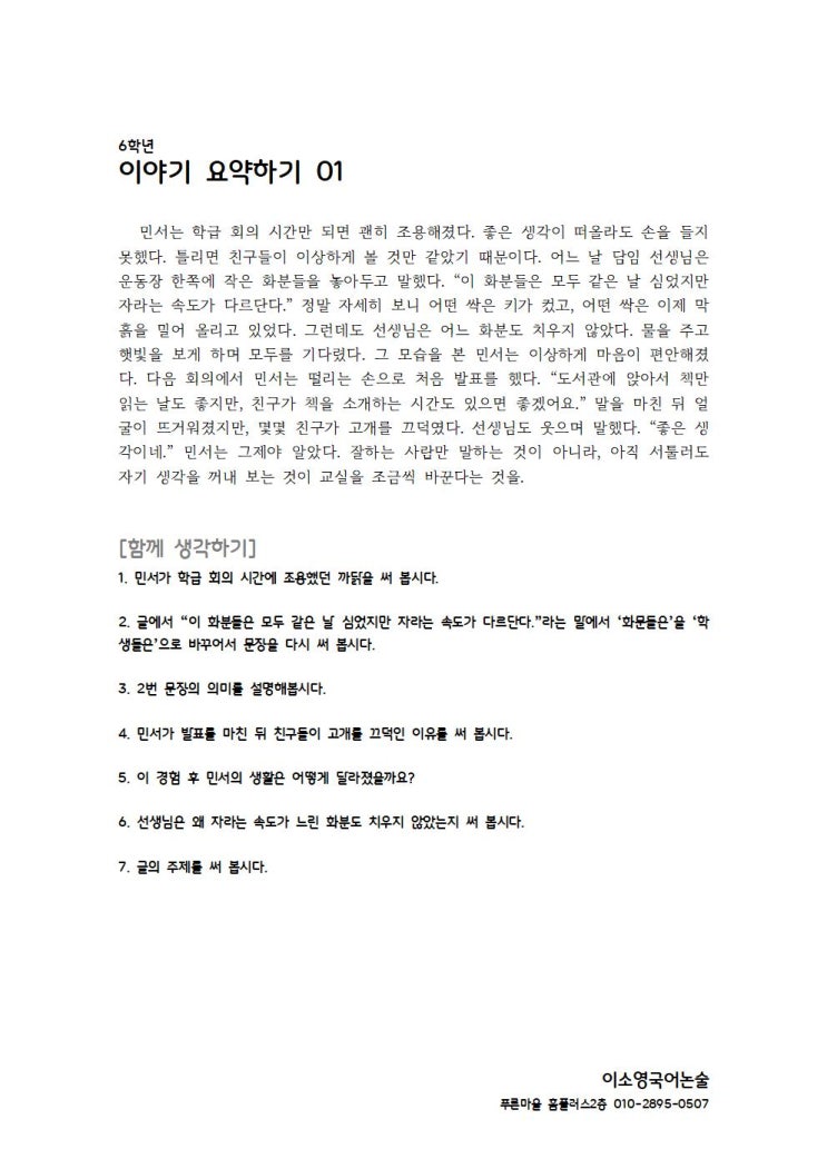 [엄마표국어논술] 이야기 요약하기(1)_화분들처럼_초등고학년