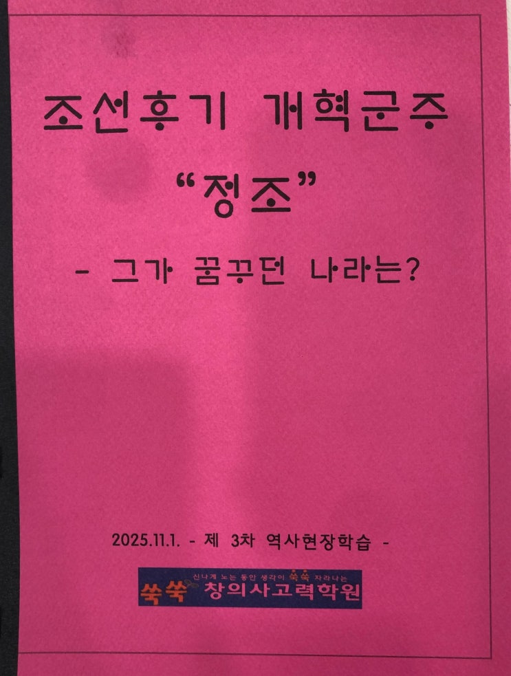* 모든 사진은 개인정보보호법에 따라 선생님을 제외하고 모자이크 처리 되었음을 알려드립니다. * 쑥쑥이 친구들 안녕하세요:) 지난 11월 1일 토요일에 쑥쑥이들과 함께 매년 진행되는 역사체험학습을 수원 화성으로 다녀왔어요~ 이번 주제는 바로!! 모두가 예상했듯이 '수원 화성' 과 '영조, 정조' 였습니다. 그럼 이제 쑥쑥이들의 역사체험학습 현장으로 떠나볼까요?! 걱정했던 것과 달이 청량한 하늘과 기분 좋은 바람으로 날씨가 너무 좋았어요^^ 다같이 단체사진으로 힘차게 시작합니다! 그럼, 첫번째 공부를 시작해 볼께요!! 우리 쑥쑥이들 하나도 빠짐없이 답사 자료집을 펴고 선생님 설명을 열심히 듣고있죠?? 영조....... <img src="https://blogthumb.pstatic.net/MjAyNTExMTRfNDkg/MDAxNzYzMDk3NjkzMTE3.KOYFOn16-pgdoMbSvutihhjN-VL_2opwugOBuRQNy48g.hp6UQncVi5cvJ9AjZwhWsnxbmIeyocMcqu7MgbLnRY4g.JPEG/12.jpg?type=s3" />