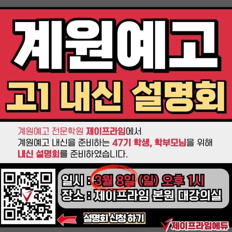 [3/8 오후1시] 계원예고 내신 대비 설명회 제이프라임