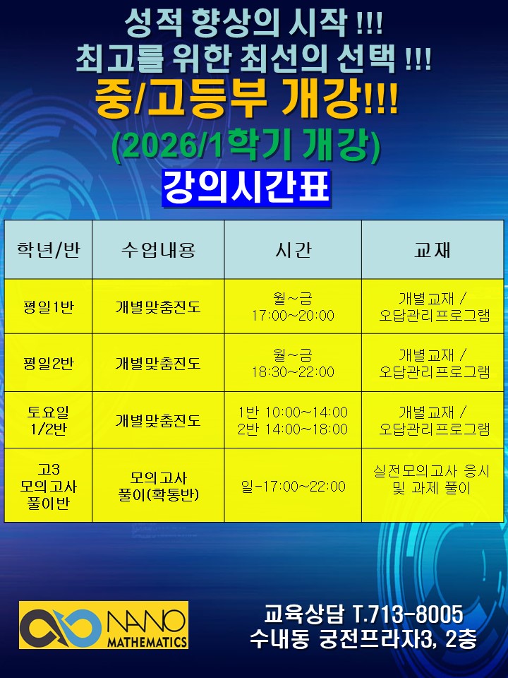 [고등수학관] 분당누테학원 돌풍수학 3월 강좌안내