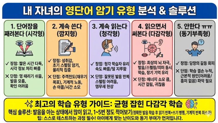 안녕하세요 지니쌤입니다 ^^ 행신동에서 아이들과 수업을 하다 보면 늘 안타까운 순간이 있습니다. 열심히 하는 것 같은데, 생각보다 영단어에서 많이 막힌다는 점입니다. 수업시에는 아이들 입에서 이런 말도 종종 듣습니다. “쌤!! 저는 단어 테스트 매일 통과해요.” “단어 외우는 건 진짜 빨라요.” 그런데 이 말 뒤에는 아주 중요한 사실 하나가 빠져 있습니다. 그만큼 빨리 잊어버린다는 점입니다. 머리에 남아 있는 단어가 거의 없고, 대부분은 휘발되어 사라진 상태인 경우가 많습니다. 그래서 시험이 끝나고 나면 아이들 입에서 이런 말이 나옵니다. “아는 단어였는데 헷갈렸어요.” 과연 정말 아는 단어였을까요? 아니요. 아는 단어....... <img src="https://blogthumb.pstatic.net/MjAyNjAxMjJfMTk4/MDAxNzY5MDE2NTU0NDcy.JTQYoHmom3RrllJHr6C5Ywa0yEEBS5nLXwKjOmZjyrYg.bR7TqxG-RRQZhAIW4ED_ceHVNk4sMLOhd18i_4avW0sg.PNG/image.png?type=s3" />