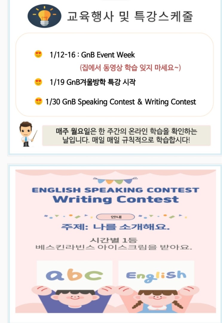새학년을 응원해요.1월 일정및 방학특강안내