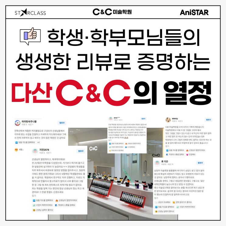 구리,남양주 입시본원 [다산 씨앤씨미술학원]의 학부모, 학생의 만족도가 높은 이유? 네이버 리뷰로 확인하세요!