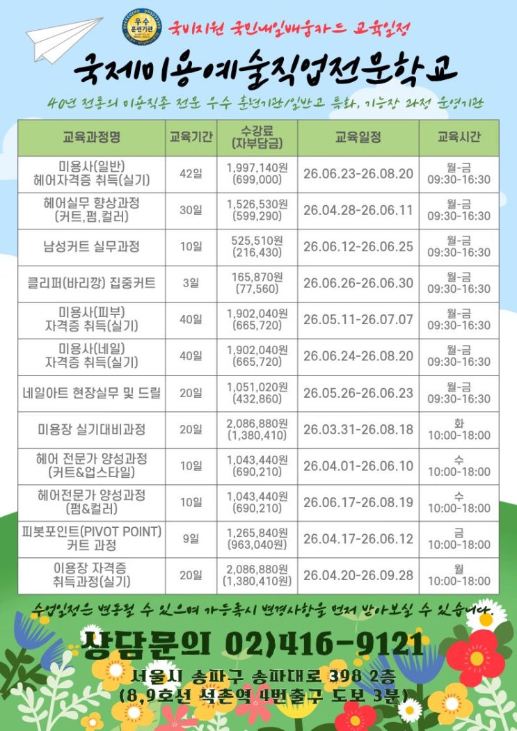 [송파미용학원] 2026년 5~6월 국비교육 개강일정안내