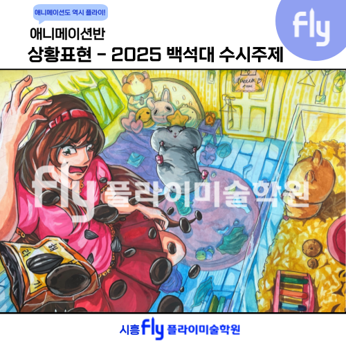 시흥/정왕동/배곧 플라이 미술학원 - 애니메이션반 <상황표현> - 2025 백석대 수시주제 일러스트 상황표현 칸만화 배곧애니메이션미술학원