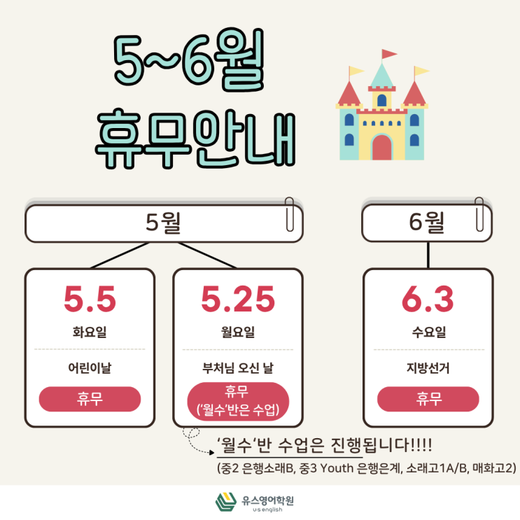 [유스영어] 2026년 5~6월 휴무 안내
